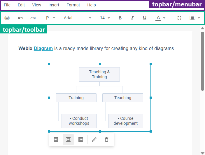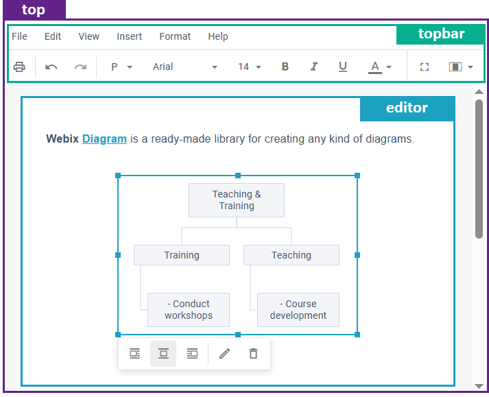 - "topbar" - the topbar view of Rich Text Editor that includes toolbar and menu