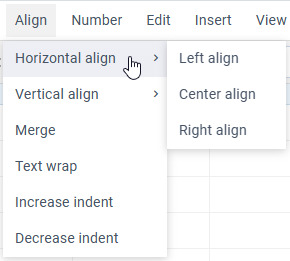 This block includes options for horizontal and vertical cell alignment, merging cells' content, the means of text wrapping, as well as indenting text in a cell to the left or to the right: