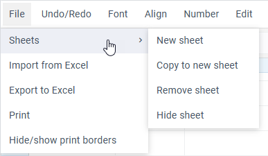 This block includes a set of options for manipulations with sheets: