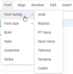 This block contains options for setting fonts and text format of the cell's content: